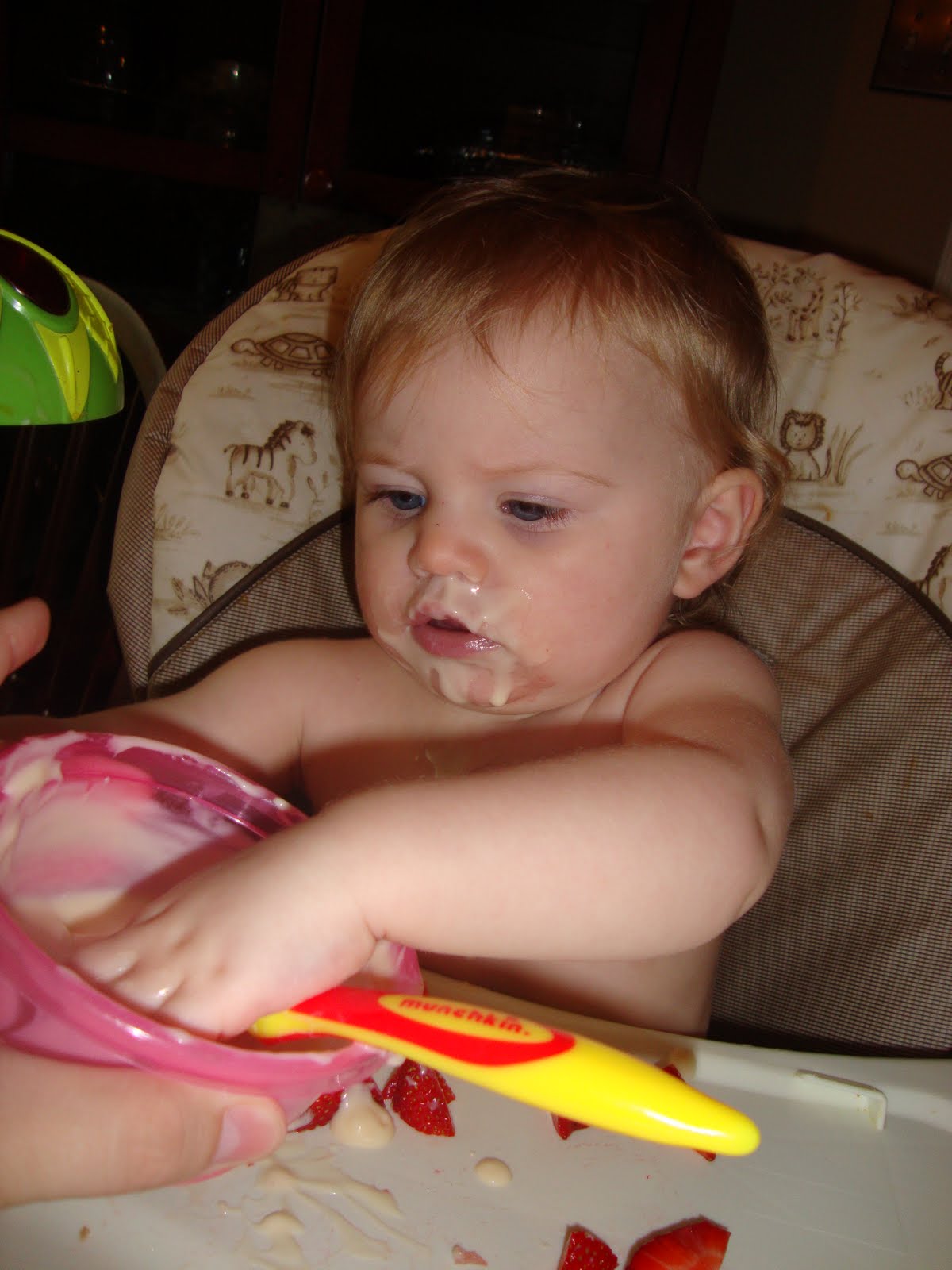 Addi got a really yummy fruit cup. She's so healthy! I'm trying to give her cupcakes, but all she wants is fruit!