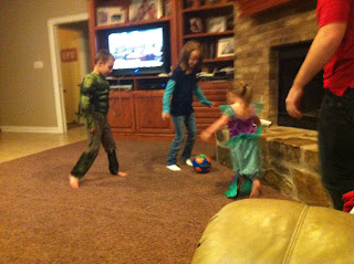 When we got back to their house, the kids put on every Disney character costume you could think of. Addi found this Captain Hook outfit and her night was made. She's been a little obsessed with him for the last few weeks. :)